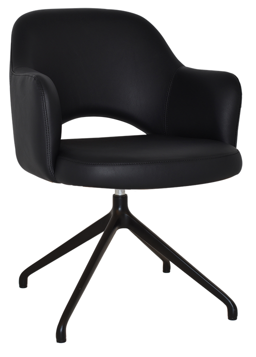 The Albury Arm Chair features a fully upholstered shell with a high density foam seat on a 4 leg trestle powder coated frame with swivel. Produc...