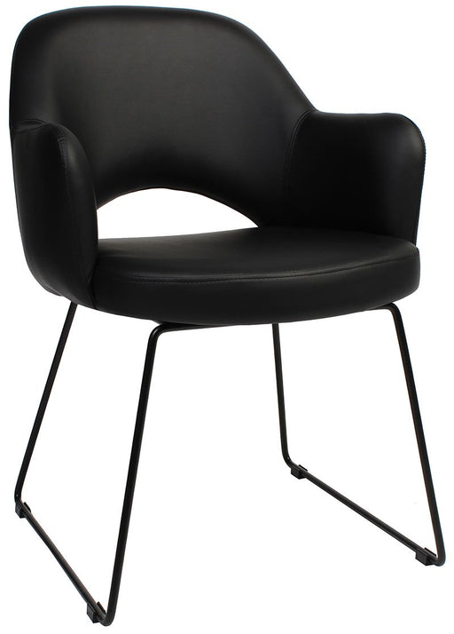 The Albury Arm Chair features a fully upholstered shell with a high density foam seat on a sled steel rod powder coat frame. Product Details Ori...