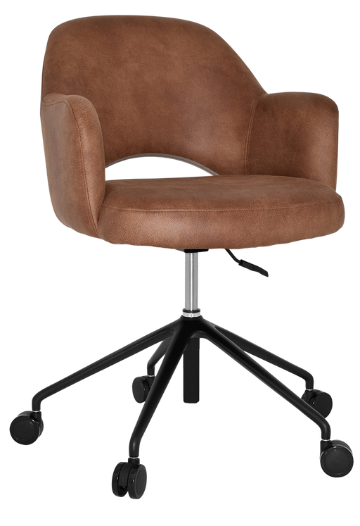 The Albury Arm Chair features a fully upholstered shell with a high density foam seat on a 5 way castor frame with height adjustment. Product Det...